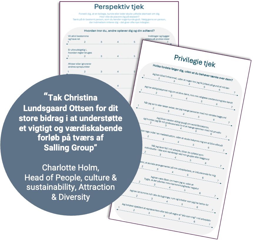 “Tak Christina Lundsgaard Ottsen for dit store bidrag i at understøtte et vigtigt og værdiskabende forløb på tværs af Salling Group” – Charlotte Holm, Head of People, culture & sustainability, Attraction & Diversity